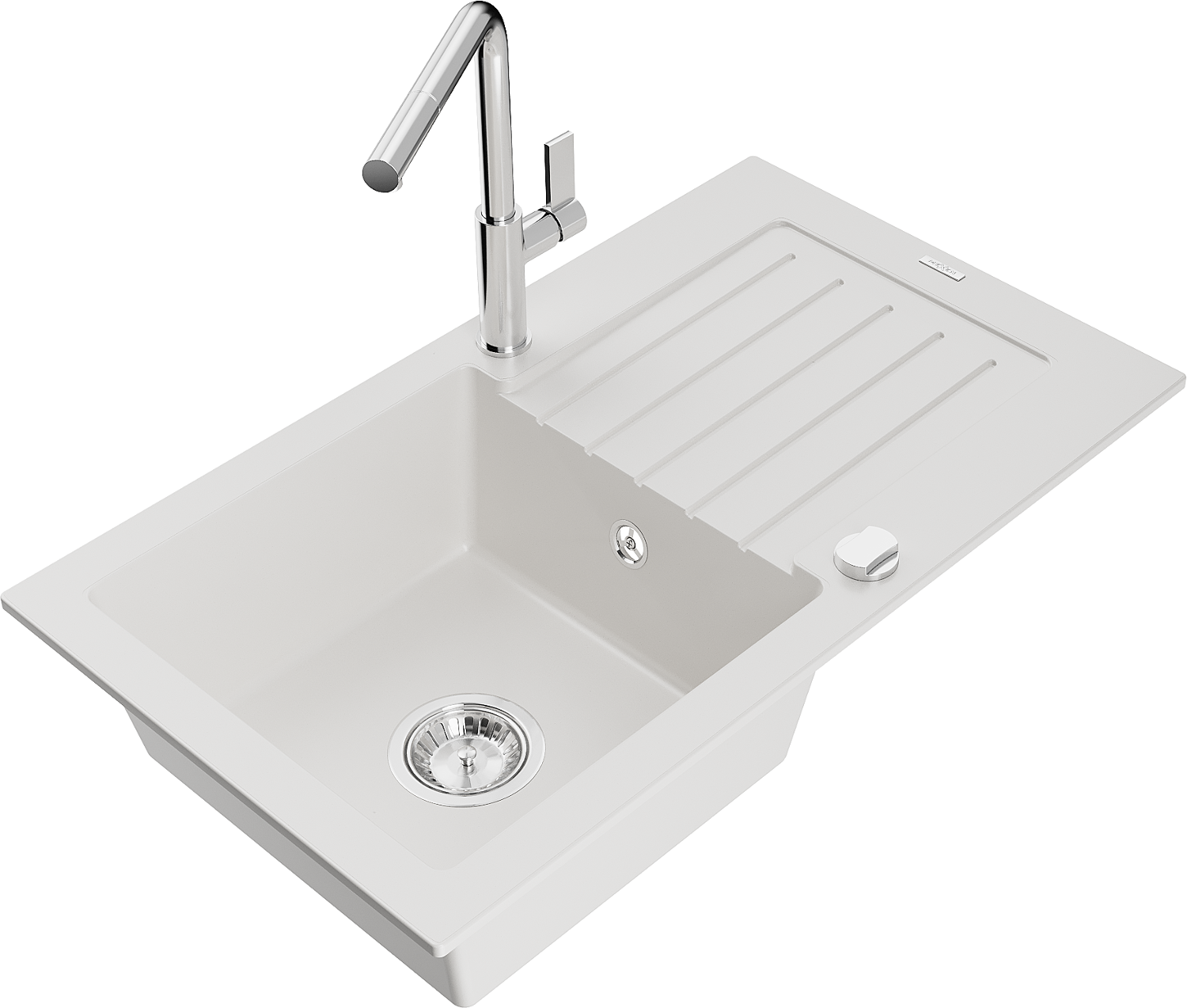 Choosing a sink with a draining board is a practical solution that allows you to set aside washed dishes or vegetables and fruits. The draining board makes daily cooking easier and helps maintain order in the kitchen.