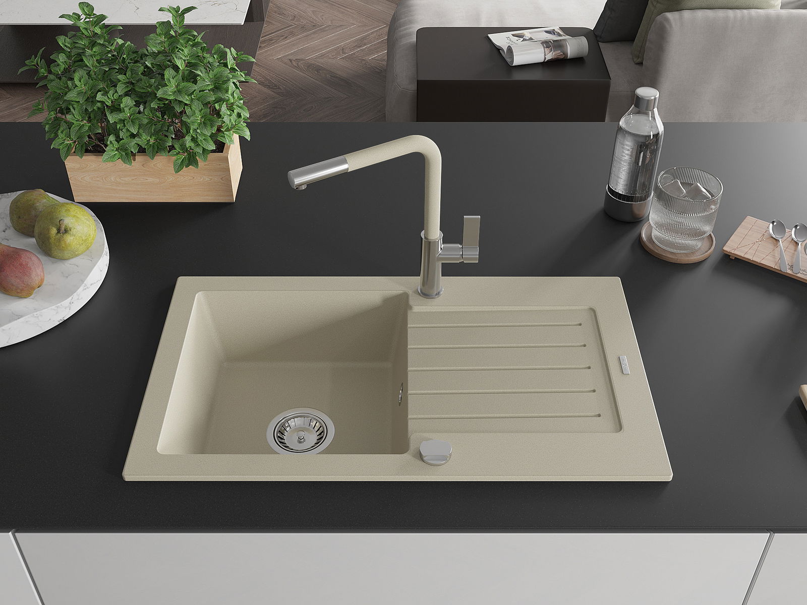 The sink is made from high-quality granite. It serves as an elegant and, above all, practical addition to any kitchen, regardless of its style. The high quality and durability of granite ensure many years of use.