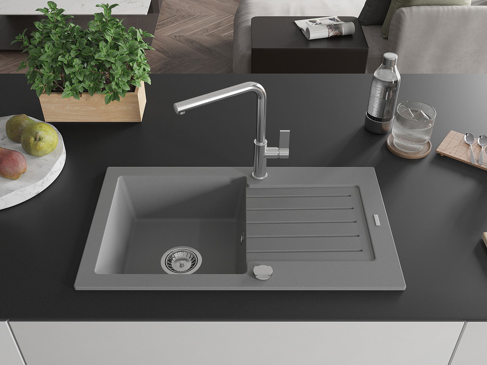 The sink is made from high-quality granite. It serves as an elegant and, above all, practical addition to any kitchen, regardless of its style. The high quality and durability of granite ensure many years of use.