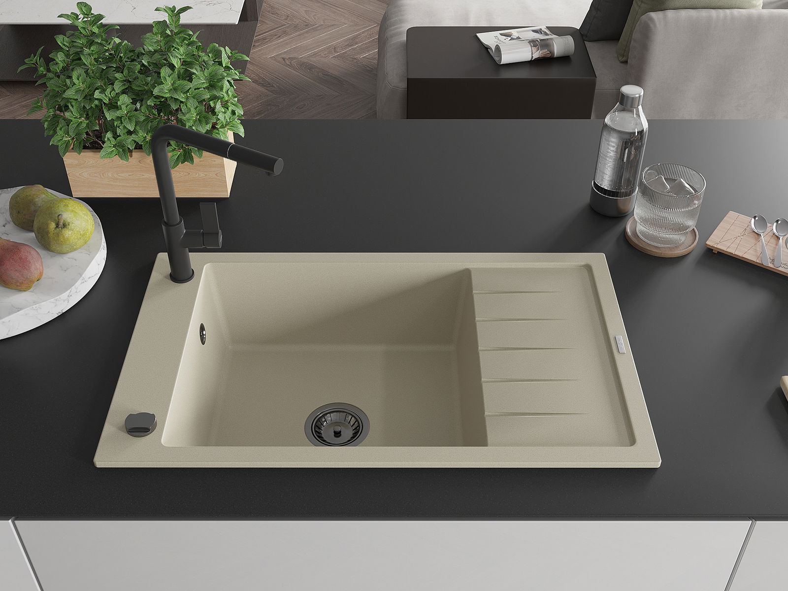 The sink is made from high-quality granite. It serves as an elegant and, above all, practical addition to any kitchen, regardless of its style. The high quality and durability of granite ensure many years of use.