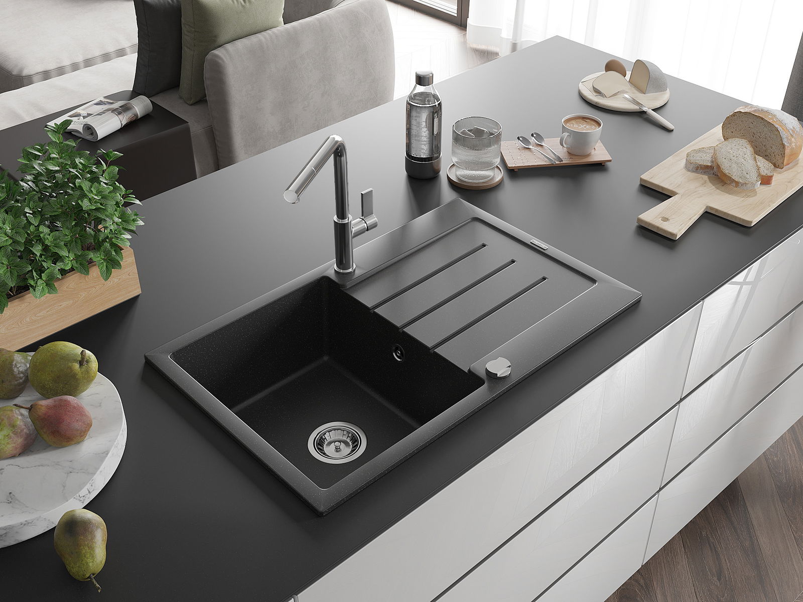 The sink is made from high-quality granite. It serves as an elegant and, above all, practical addition to any kitchen, regardless of its style. The high quality and durability of granite ensure many years of use.
