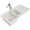 Choosing a sink with a draining board is a practical solution that allows you to set aside washed dishes or vegetables and fruits. The draining board makes daily cooking easier and helps maintain order in the kitchen.