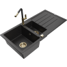 Mexen Andres granite sink 1.5-bowl with drainer and Flora kitchen tap, speckled black - 6515-76-670401-57-G