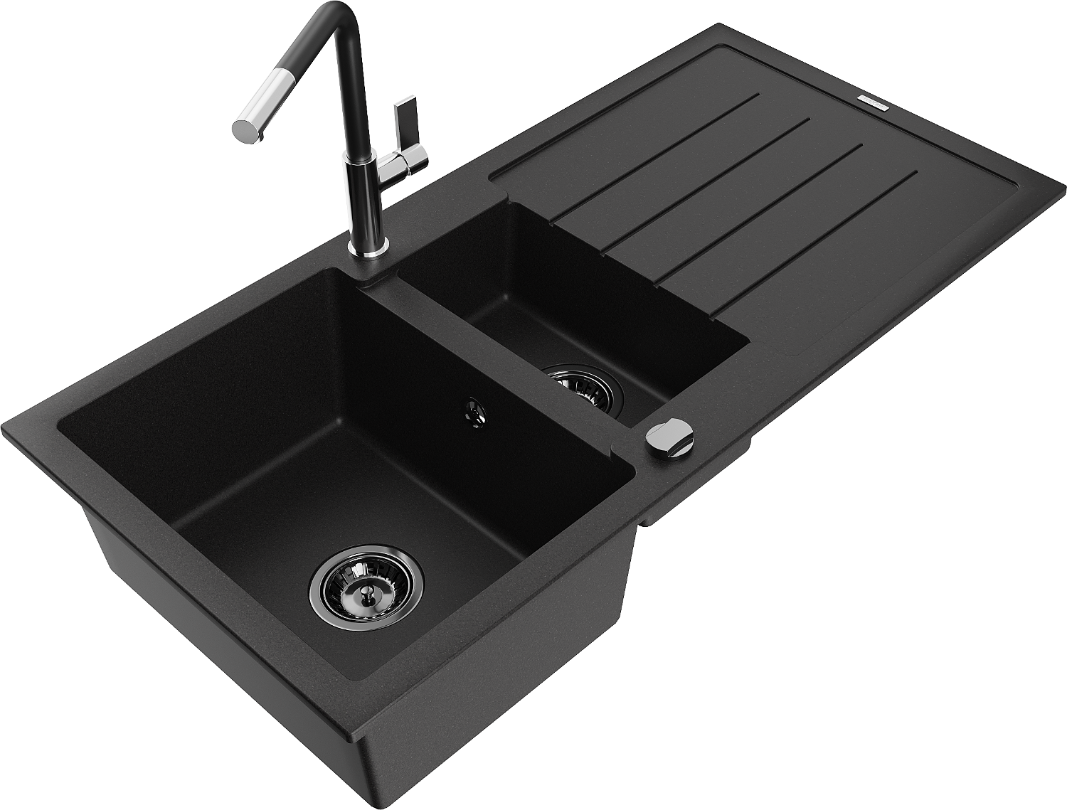 Mexen Andres granite sink 1.5-bowl with drainer and kitchen tap Flora, black - 6515-77-670401-07-B