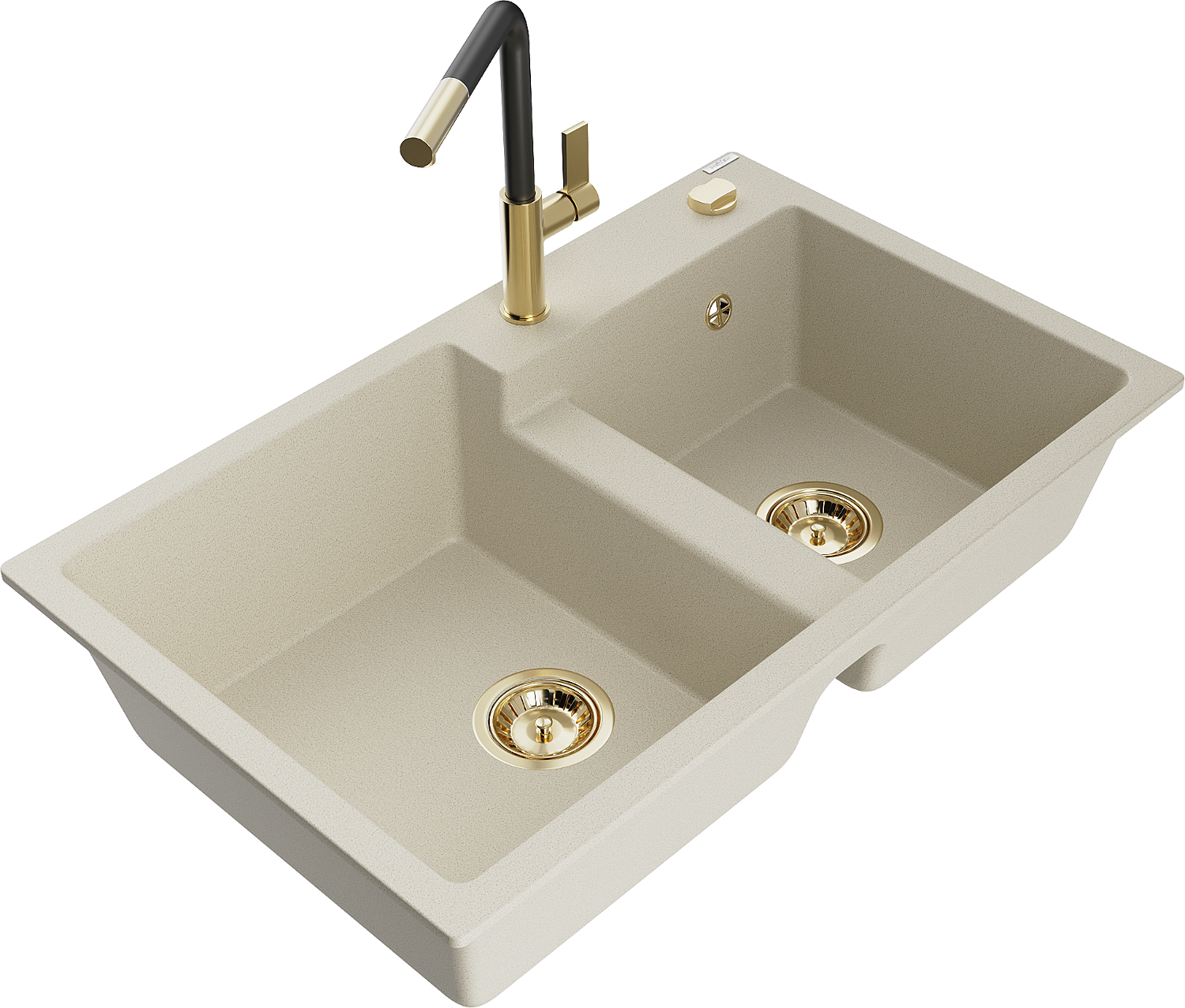 Mexen Tomas granite sink with 2 bowls and Flora kitchen tap, beige - 6516-69-670401-57-G
