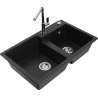 Mexen Tomas granite 2-bowl sink with Flora kitchen tap, grey - 6516-71-670401-06