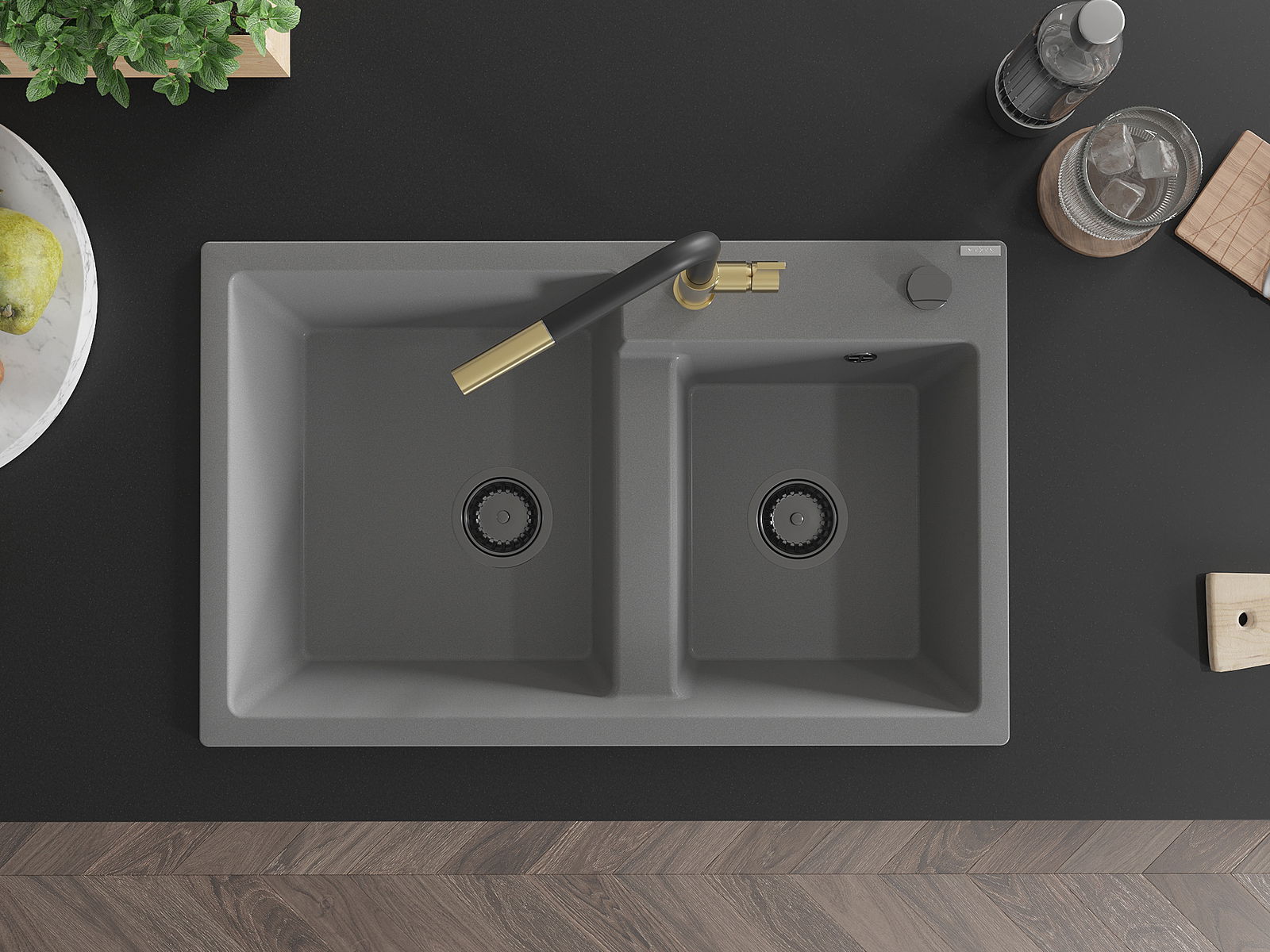 The surface of the sink is resistant to stains and discolouration, making it easy to maintain cleanliness and retain its colour for a long time of use. An aesthetic and practical addition to any kitchen.
