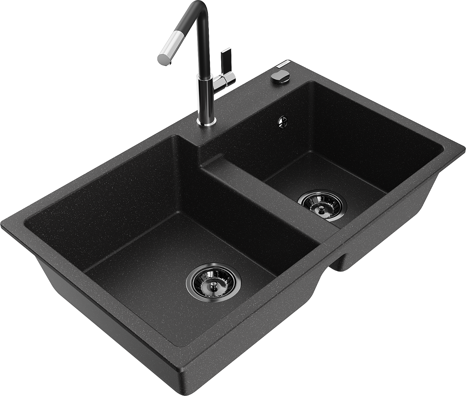 Mexen Tomas Granite 2-Bowl Sink with Flora Kitchen Tap, Black/Silver Metallic - 6516-73-670401-07-B
