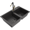 Mexen Tomas granite kitchen sink 2-bowl with Flora kitchen tap, black - 6516-77-670401-57-B