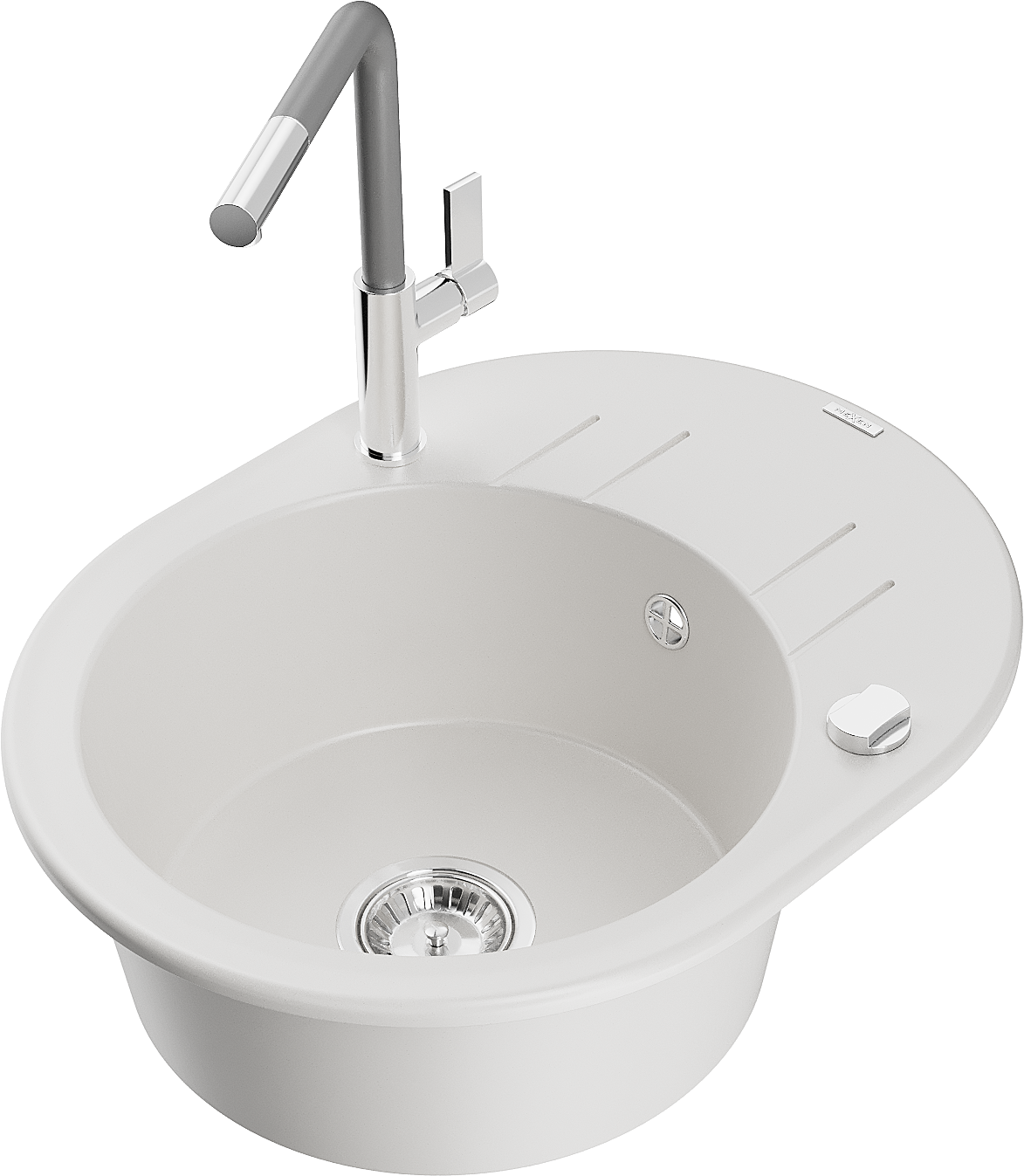The surface of the sink is resistant to stains and discolouration, making it easy to maintain cleanliness and retain its colour for a long time of use. An aesthetic and practical addition to any kitchen.