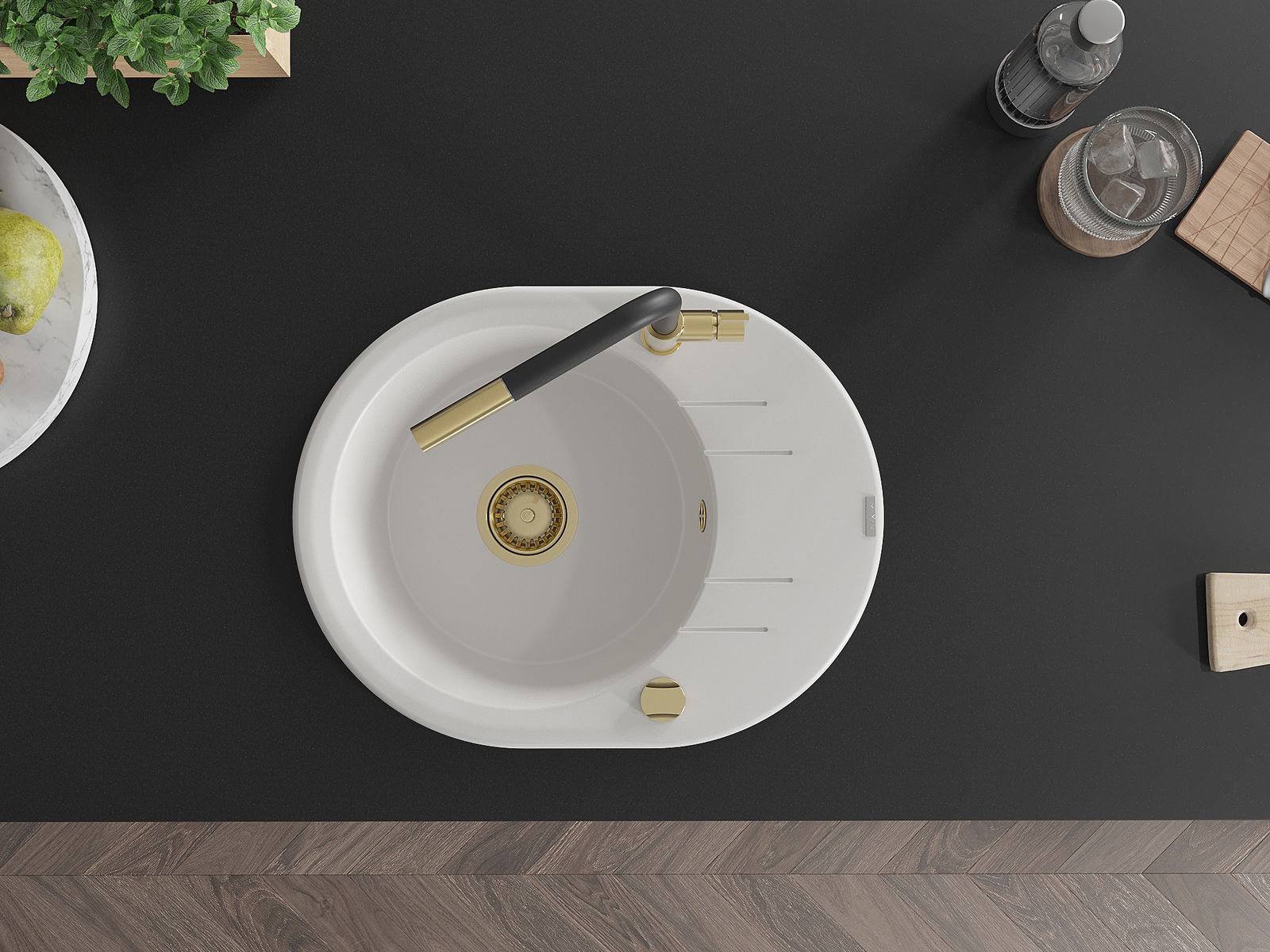 Choosing a sink with a draining board is a practical solution that allows you to set aside washed dishes or vegetables and fruits. The draining board makes daily cooking easier and helps maintain order in the kitchen.