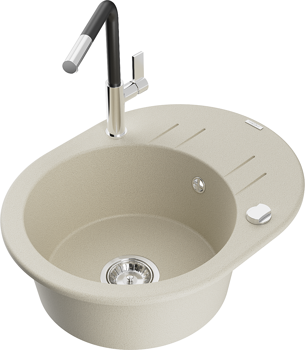 Mexen Kevin 1-bowl granite sink with drainer and Flora kitchen tap, beige - 6517-69-670401-07