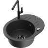 Mexen Kevin 1-bowl granite sink with drainer and Flora kitchen tap, black - 6517-77-670401-70-B