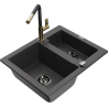 Mexen Carlos 1.5-bowl granite sink with Flora kitchen tap, black - 6518-77-670401-57-B