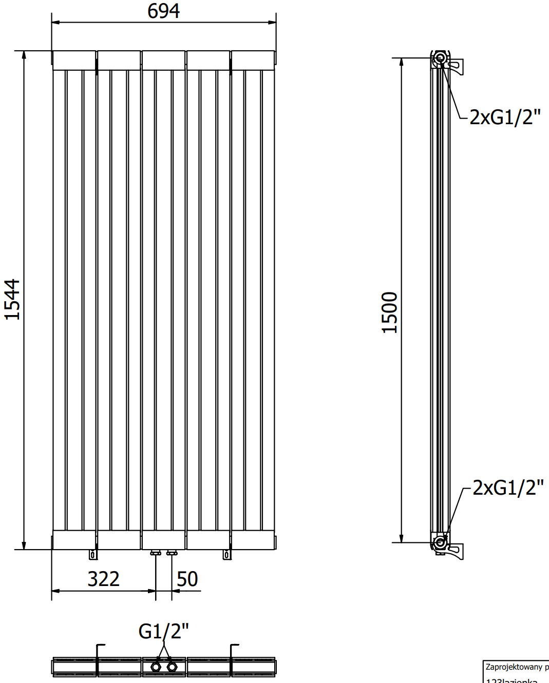 Included: hangers, installation kit, sealing plugs and air vent