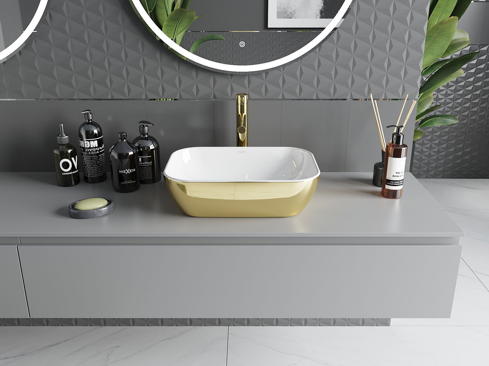 Mexen Rita countertop washbasin 45 x 32 cm, white/gold - 21084506