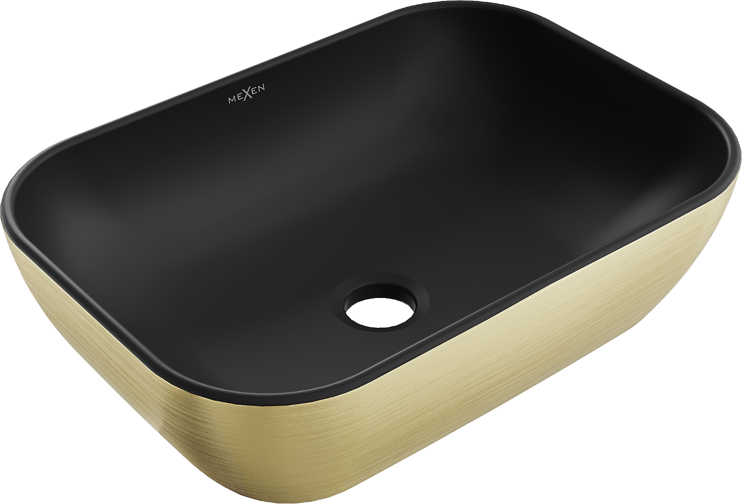 Mexen Rita countertop washbasin 45 x 32 cm, black matte/golden line pattern - 21084577