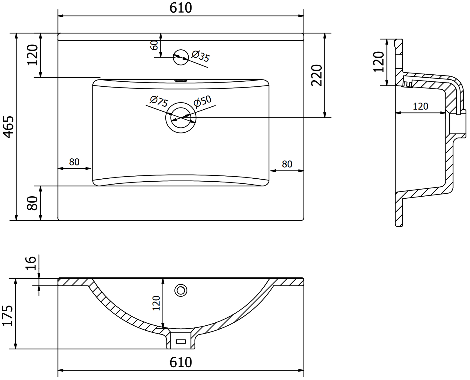 Overflow hole: Yes