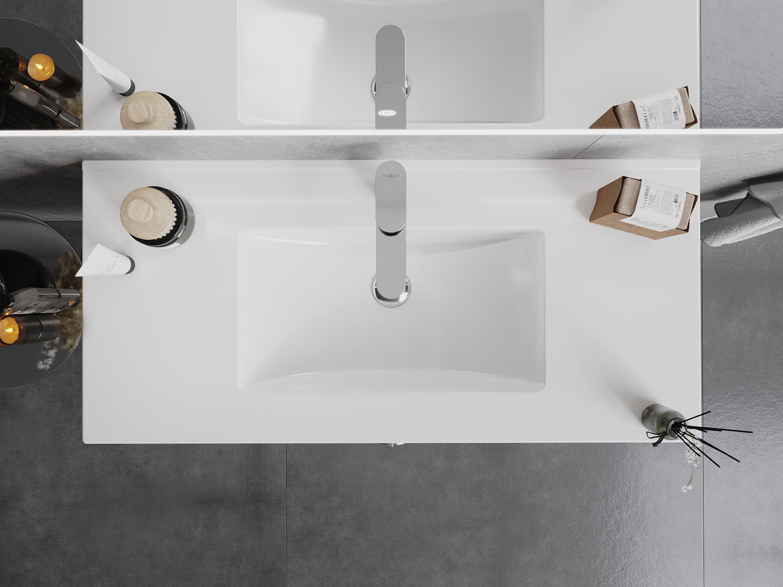 The washbasin has an opening where we can install a tap. This allows for saving valuable space in the bathroom and enhances its aesthetics. This solution also makes it easier to maintain cleanliness around the washbasin.