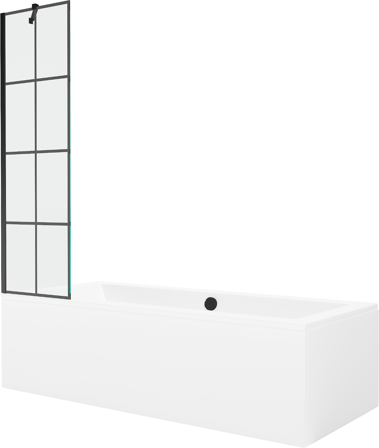 Mexen Cube rectangular bath 170 x 80 cm with casing and 1-wing screen 50 cm, black pattern - 550517080X9505007077
