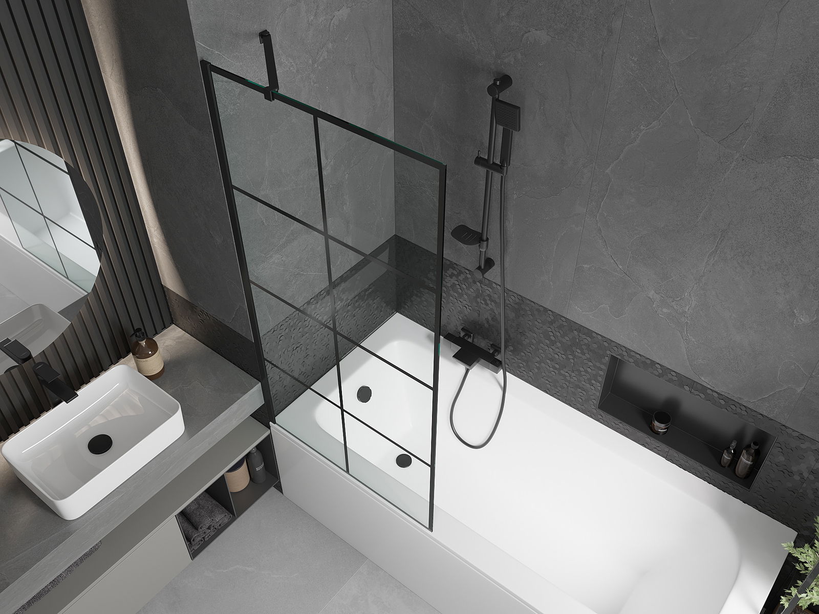 Effective protection against water spilling during bathing. The screen has seals that perfectly fit the glass surface and the edge of the bathtub. A functional solution ensuring safety and easy maintenance of cleanliness.