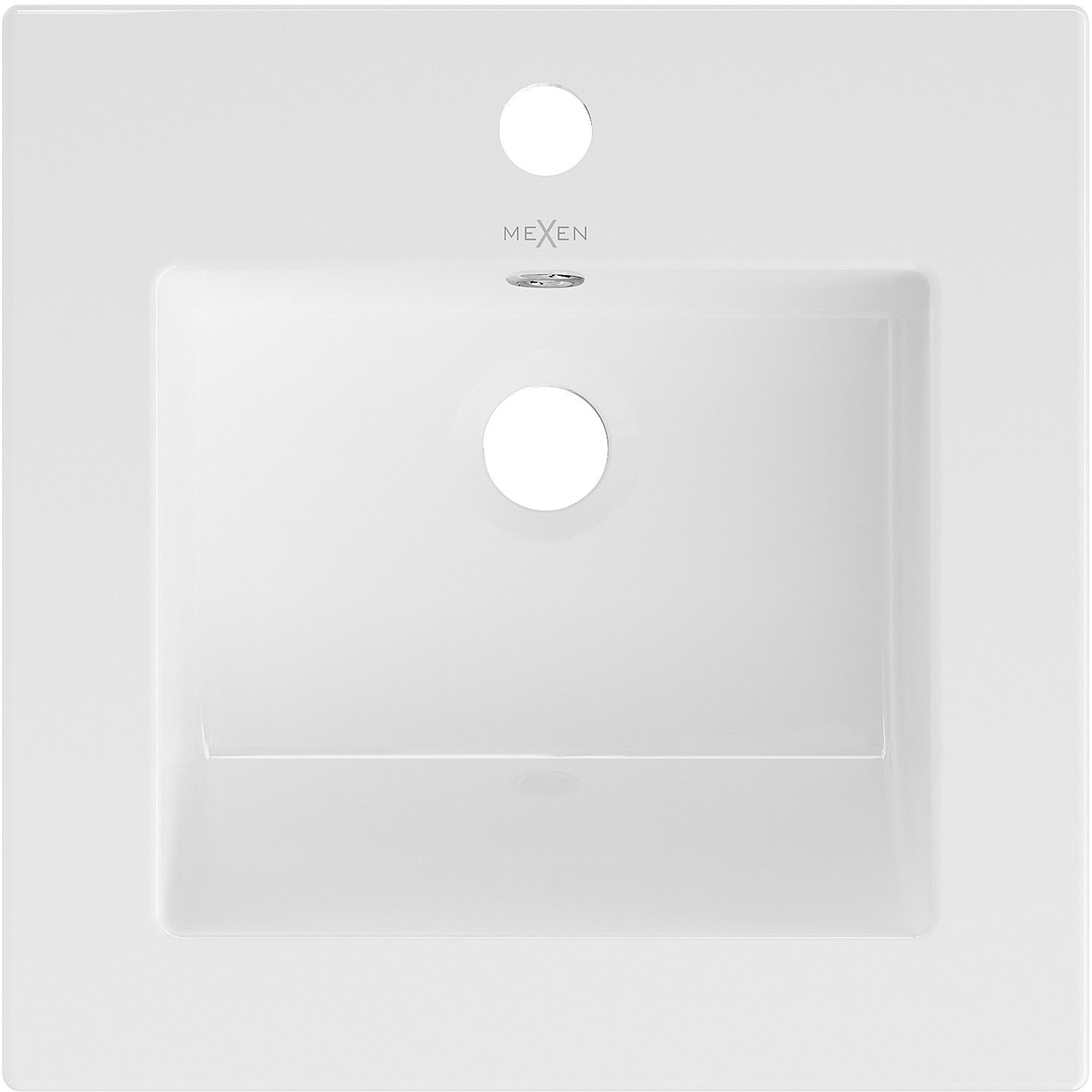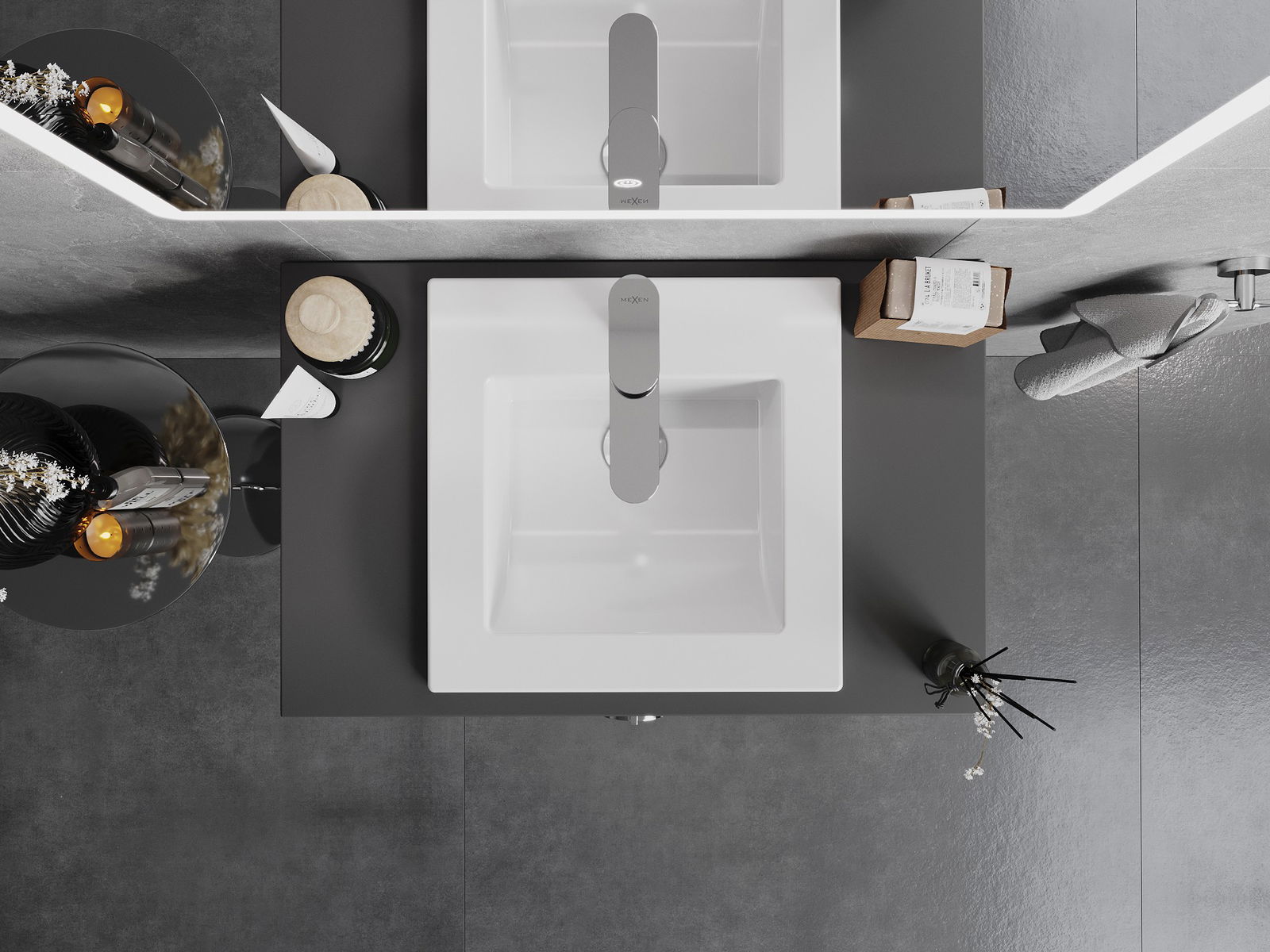 The washbasin has an opening where we can install a tap. This allows for saving valuable space in the bathroom and enhances its aesthetics. This solution also makes it easier to maintain cleanliness around the washbasin.