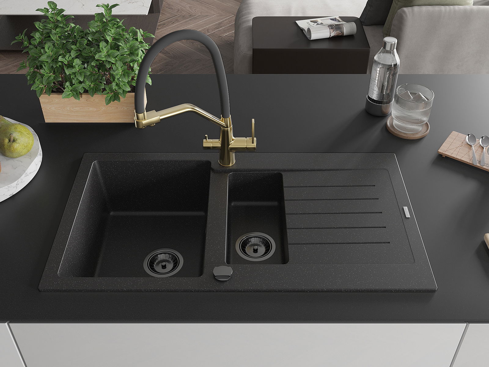 The sink is made from high-quality granite. It serves as an elegant and, above all, practical addition to any kitchen, regardless of its style. The high quality and durability of granite ensure many years of use.