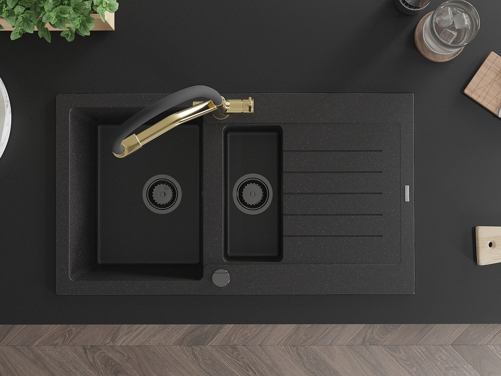 Choosing a sink with a draining board is a practical solution that allows you to set aside washed dishes or vegetables and fruits. The draining board makes daily cooking easier and helps maintain order in the kitchen.