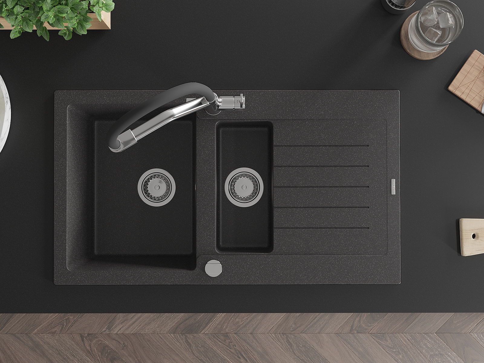 The sink is made from high-quality granite. It serves as an elegant and, above all, practical addition to any kitchen, regardless of its style. The high quality and durability of granite ensure many years of use.