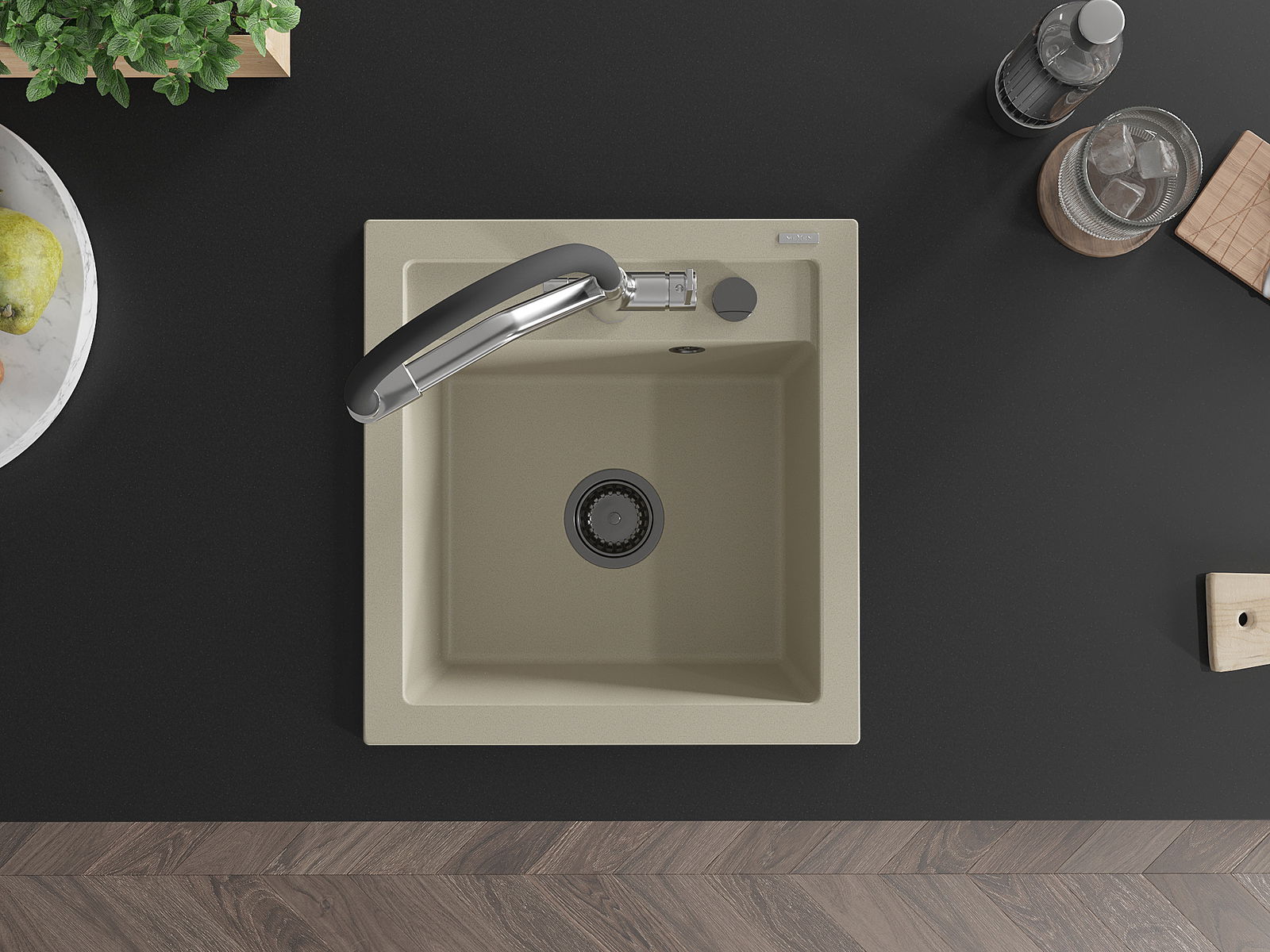 The surface of the sink is resistant to stains and discolouration, making it easy to maintain cleanliness and retain its colour for a long time of use. An aesthetic and practical addition to any kitchen.