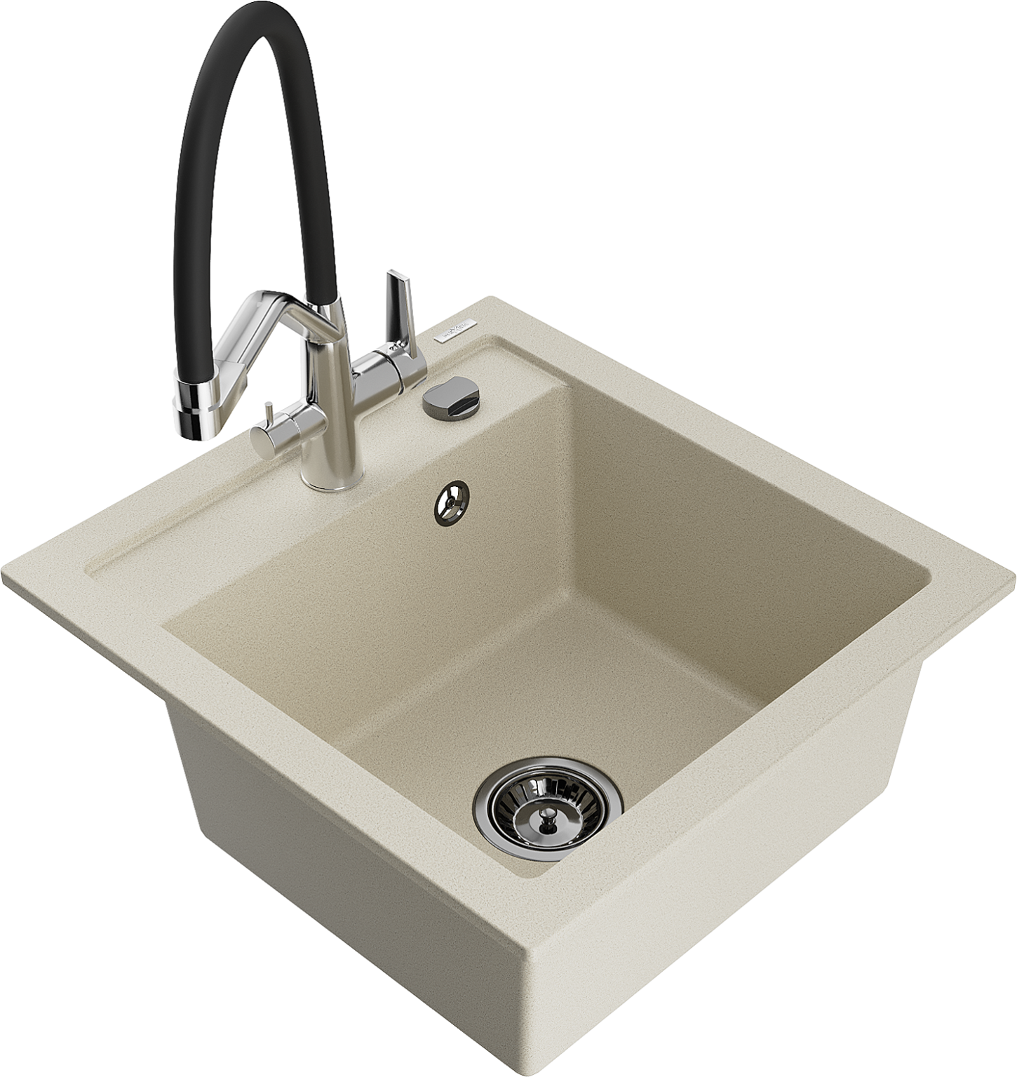 Mexen Vito 1-bowl granite kitchen sink with Duo kitchen tap, beige - 6503-69-671701-07-B