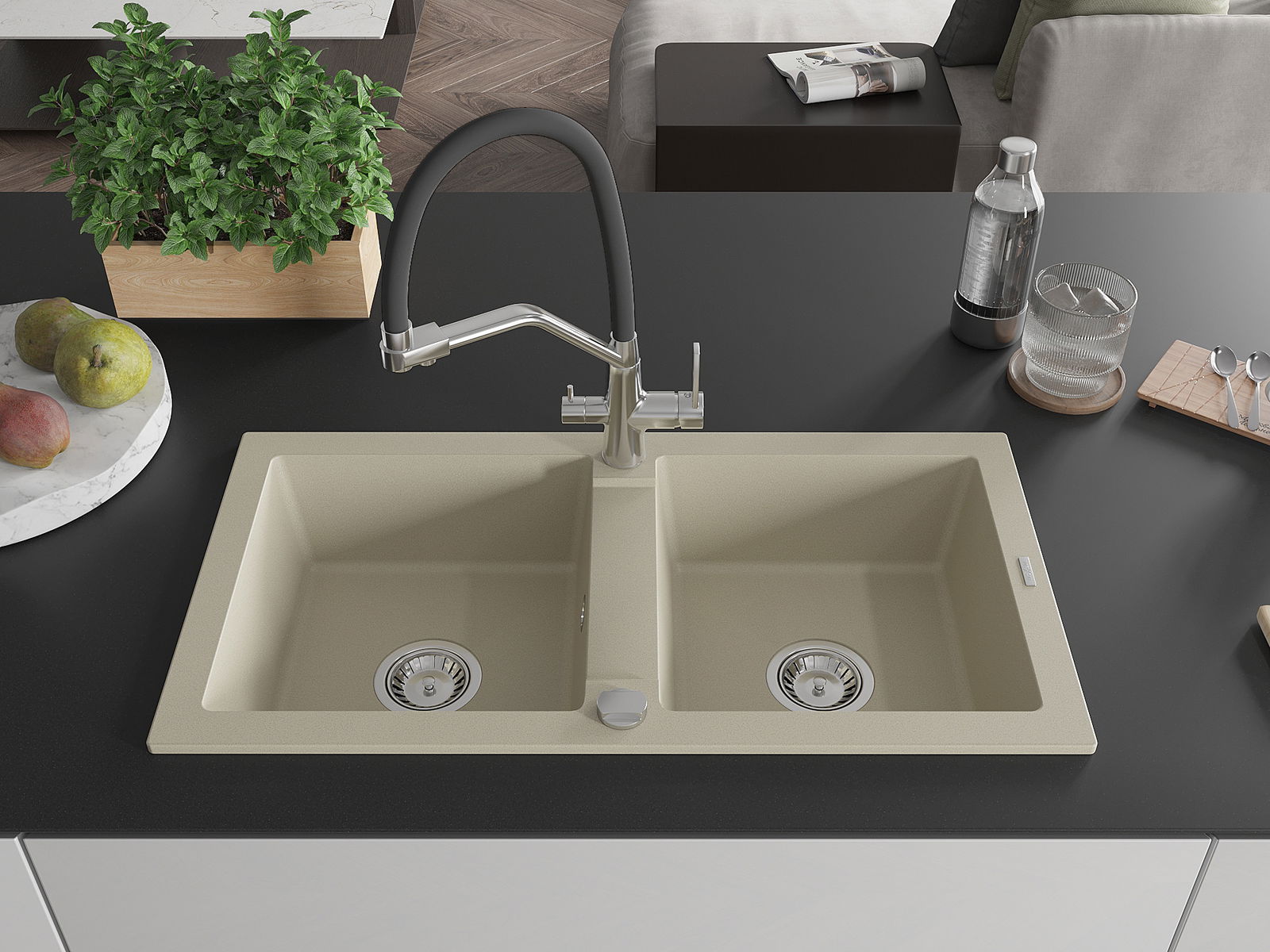 The sink is made from high-quality granite. It serves as an elegant and, above all, practical addition to any kitchen, regardless of its style. The high quality and durability of granite ensure many years of use.