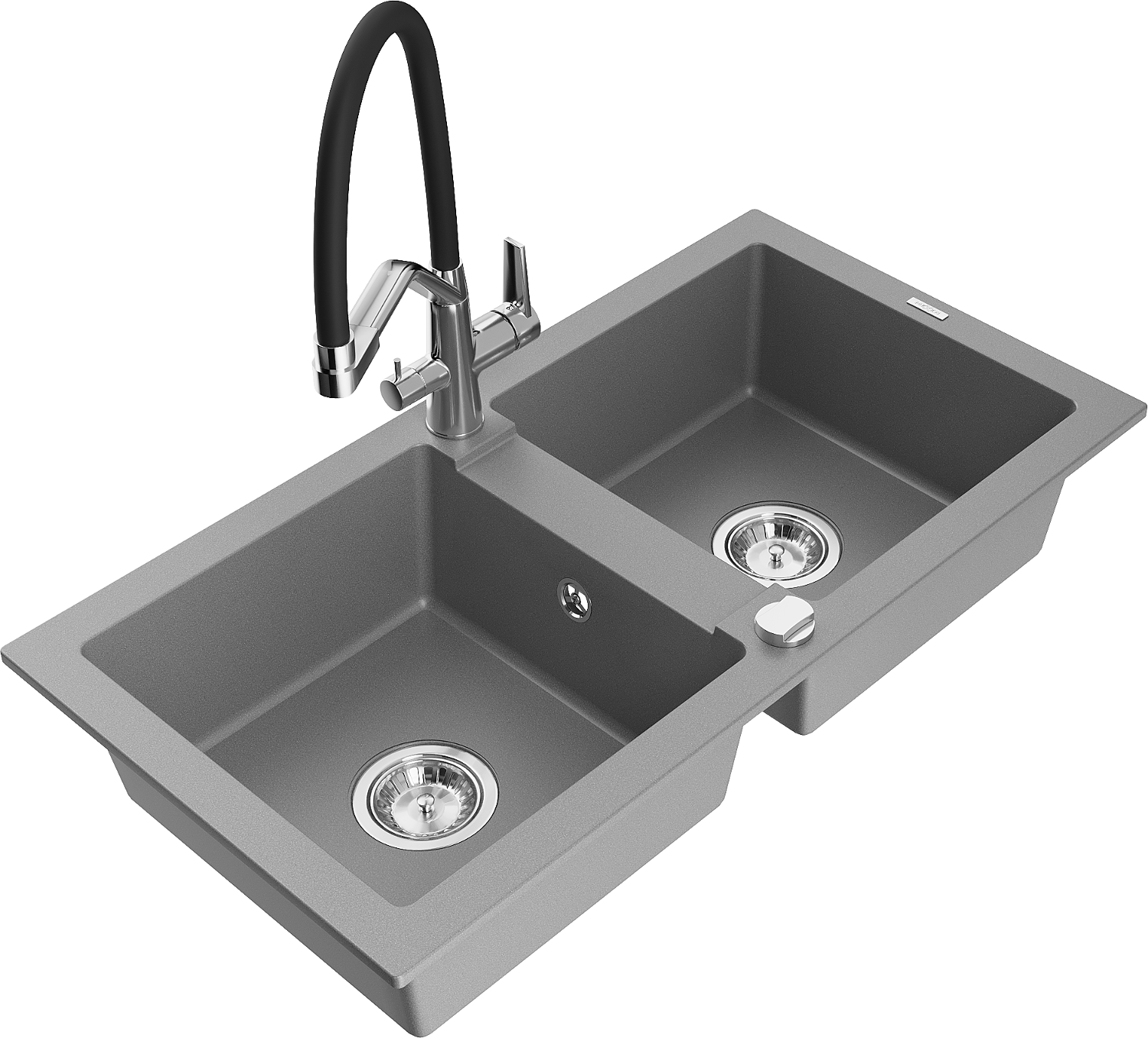 Mexen Mario 2-bowl granite kitchen sink with Duo kitchen mixer tap, grey - 6504-71-671701-07