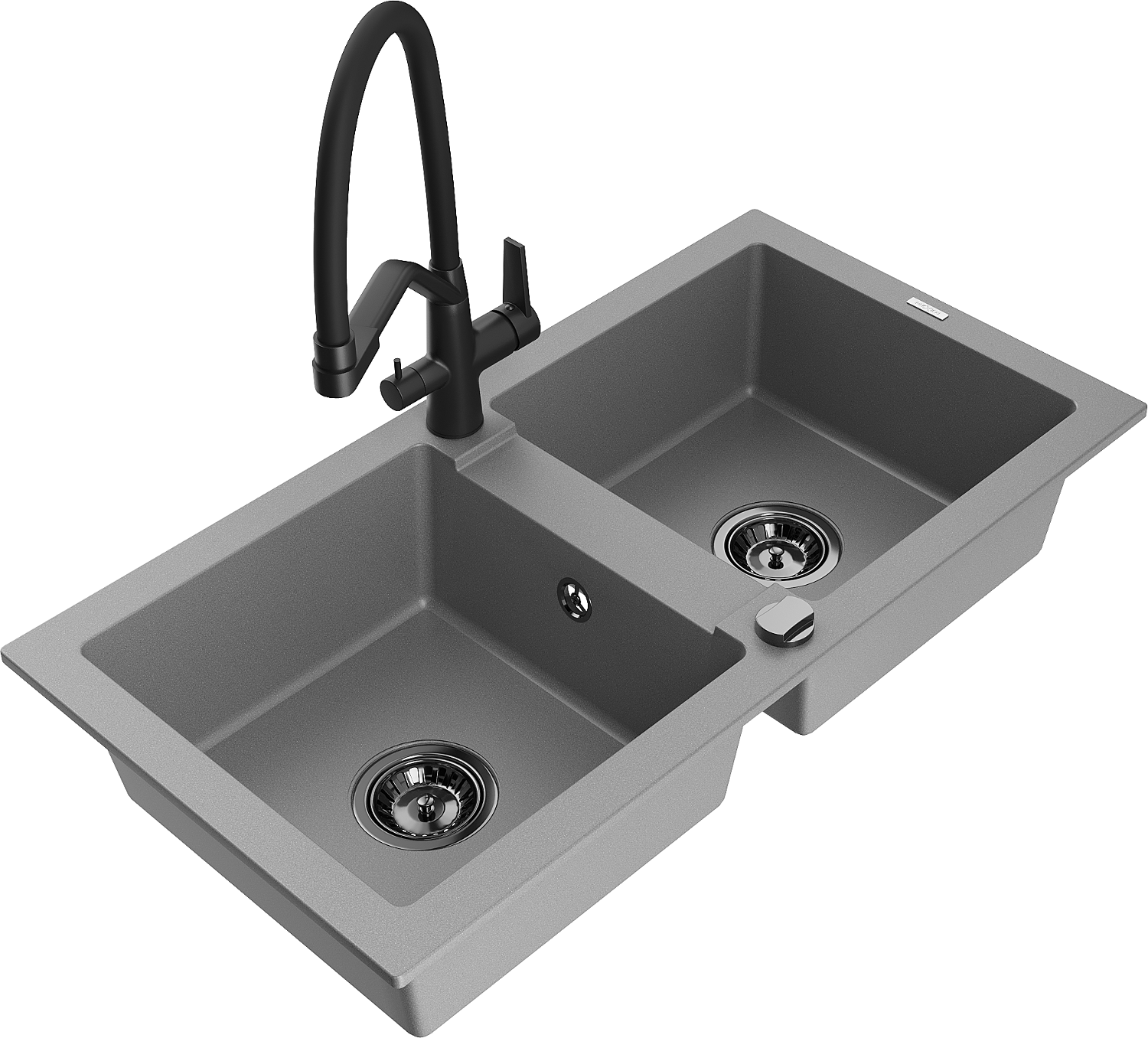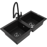 Mexen Mario granite sink 2-bowl with Duo kitchen tap, grey - 6504-71-671701-70-B