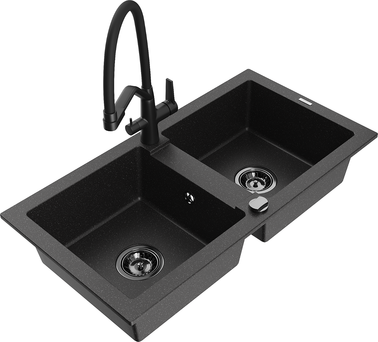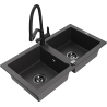 Mexen Mario granite kitchen sink 2-compartment with Duo kitchen tap, black/silver metallic - 6504-73-671701-70-B