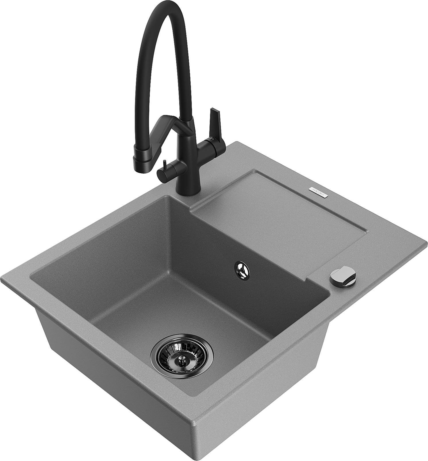 Mexen Enzo granite sink 1-bowl with drainer and Duo kitchen tap, grey - 6506-71-671701-70-B
