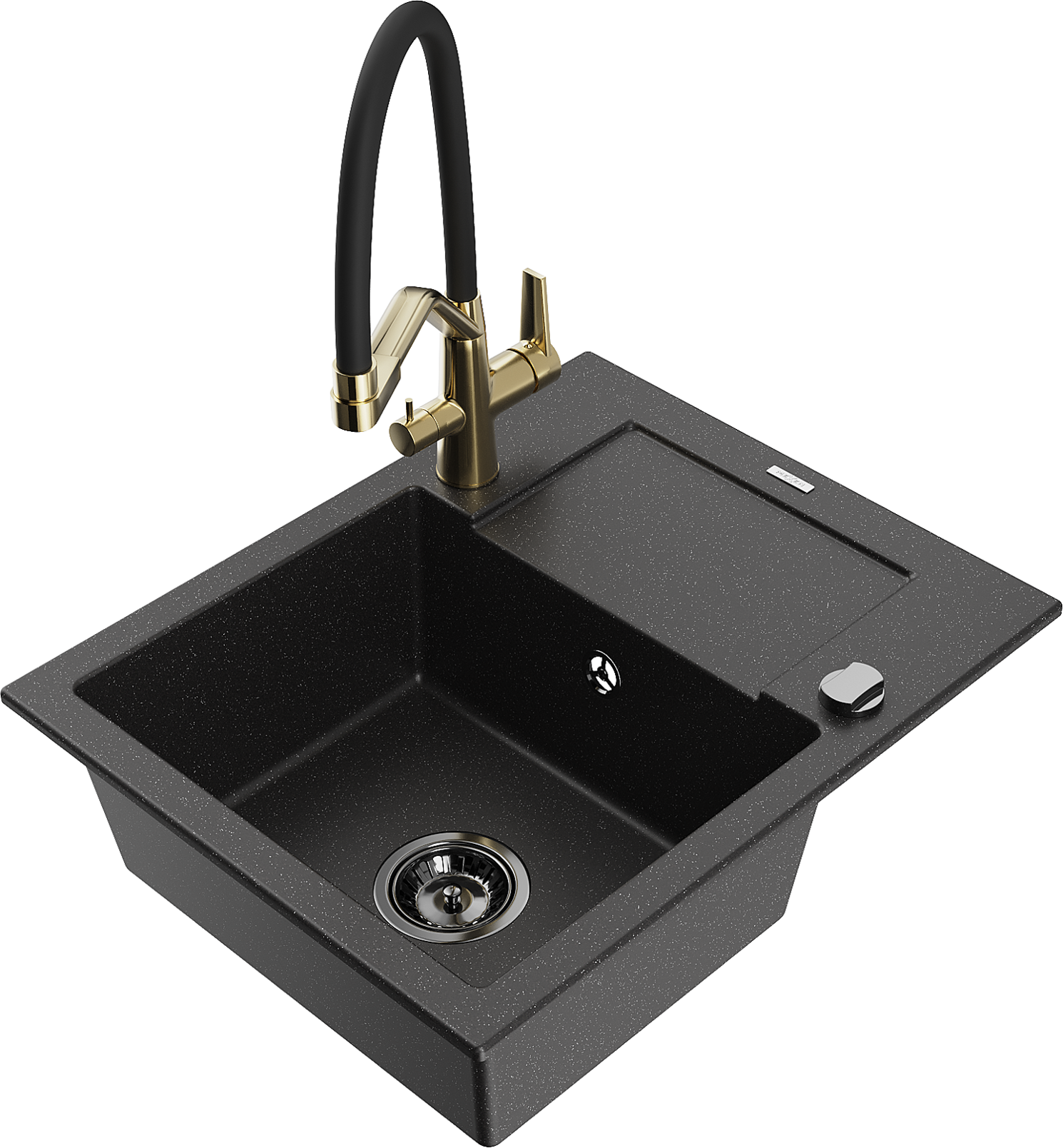 Mexen Enzo granite sink 1-bowl with drainer and Duo kitchen tap, black/silver metallic - 6506-73-671701-57-B