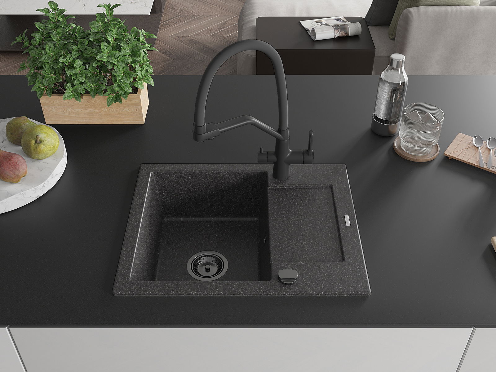 The sink is made from high-quality granite. It serves as an elegant and, above all, practical addition to any kitchen, regardless of its style. The high quality and durability of granite ensure many years of use.
