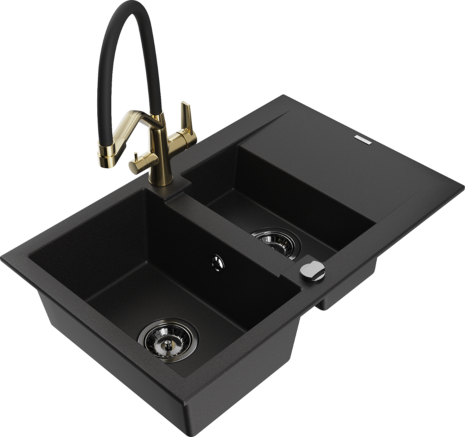 Mexen Gaspar granite sink 1.5-bowl with drainer and Duo kitchen tap, black - 6507-77-671701-57-B
