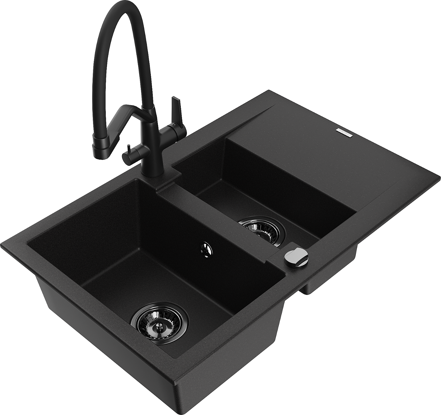 Mexen Gaspar granite sink 1.5-bowl with drainer and Duo kitchen tap, black - 6507-77-671701-70-B