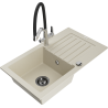 Mexen Pablo granite kitchen sink 1-bowl with drainer and Duo kitchen tap, white - 6510-20-671701-07-B