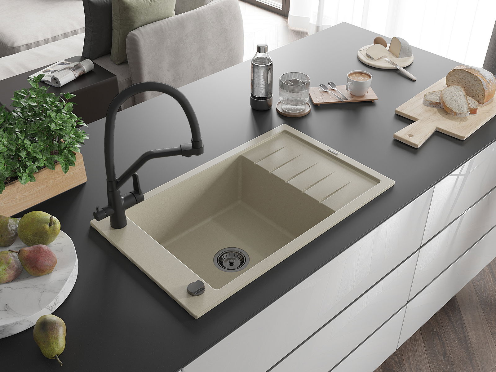 The sink is made from high-quality granite. It serves as an elegant and, above all, practical addition to any kitchen, regardless of its style. The high quality and durability of granite ensure many years of use.