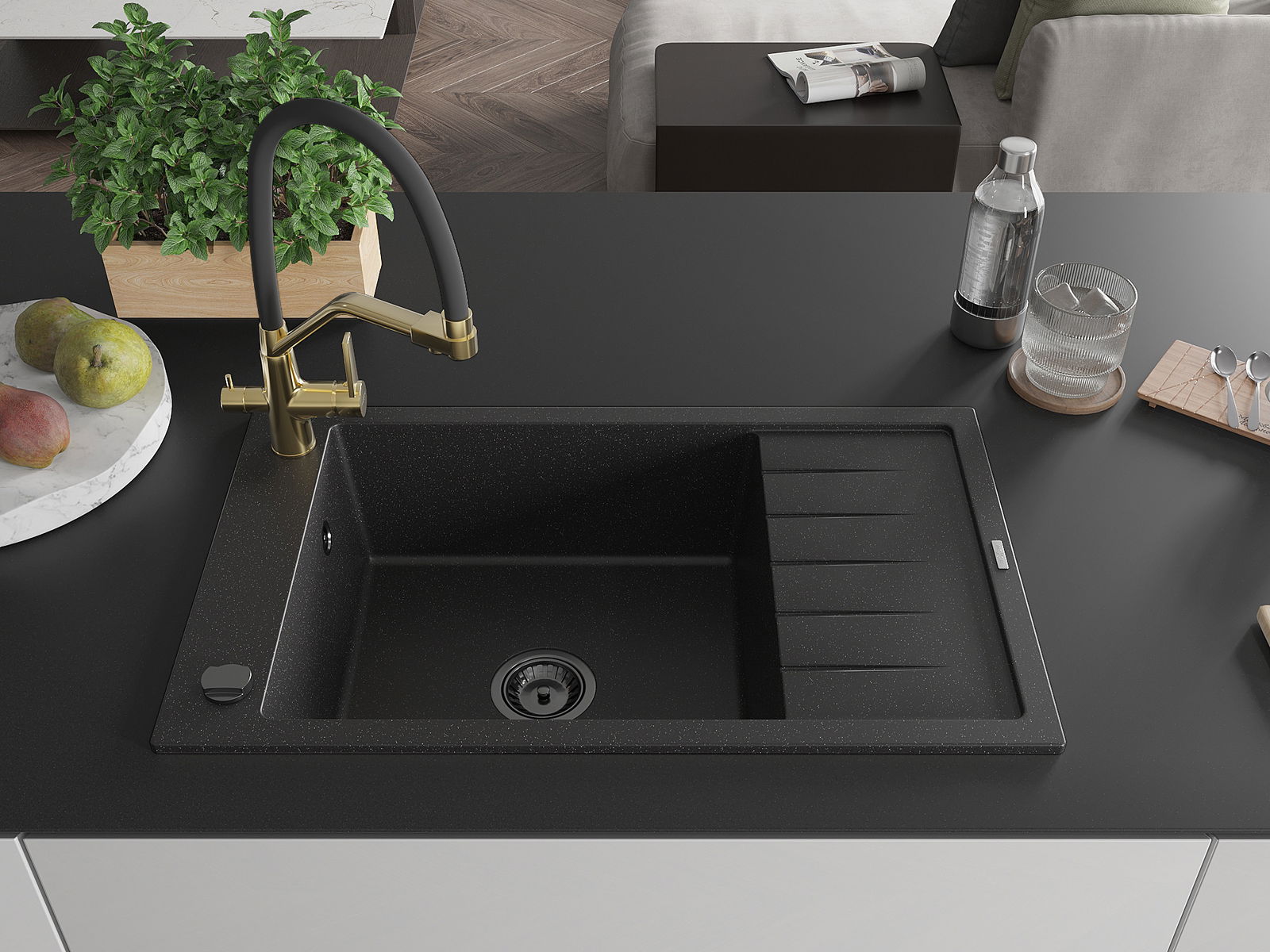 The sink is made from high-quality granite. It serves as an elegant and, above all, practical addition to any kitchen, regardless of its style. The high quality and durability of granite ensure many years of use.