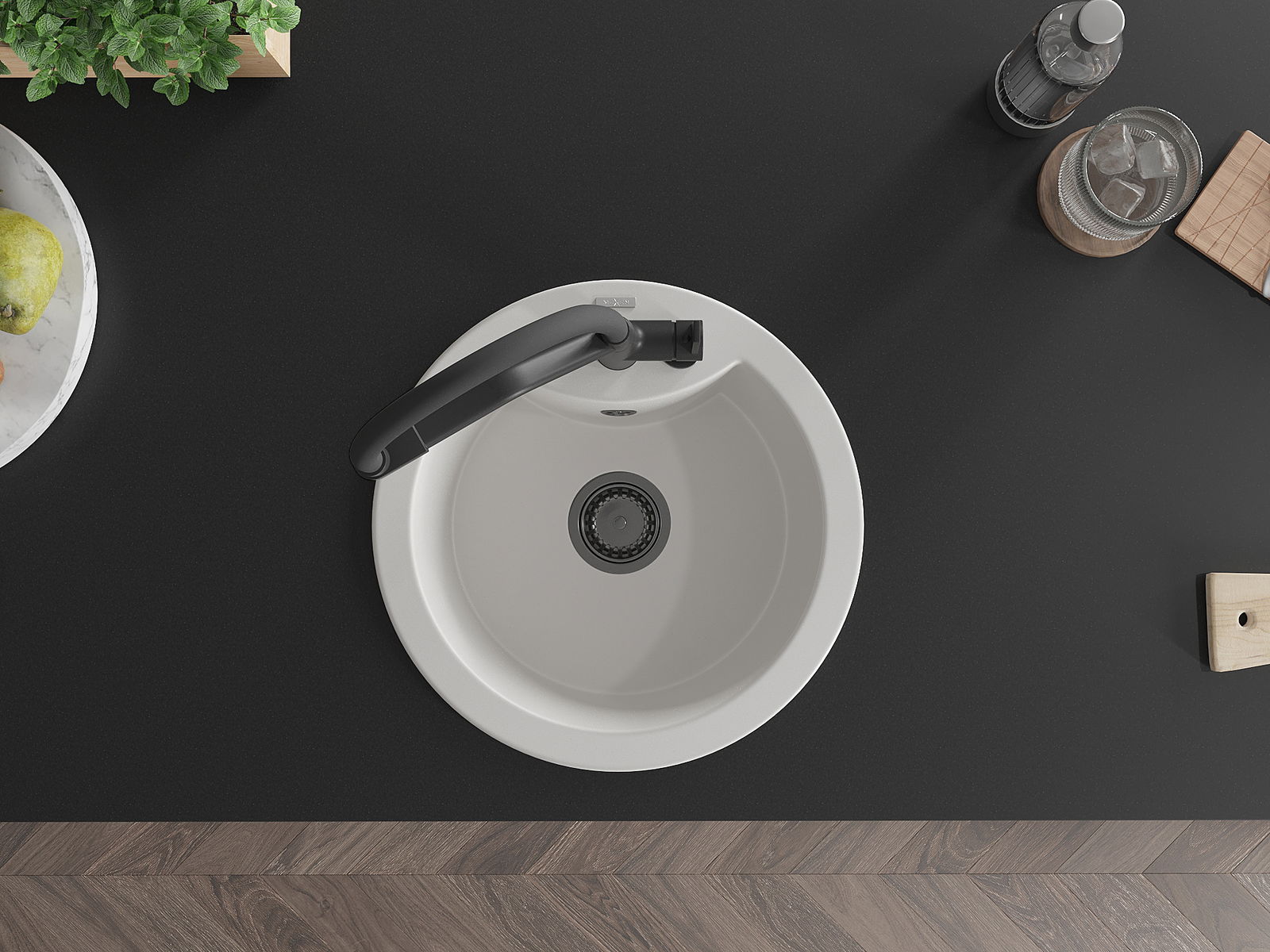 The surface of the sink is resistant to stains and discolouration, making it easy to maintain cleanliness and retain its colour for a long time of use. An aesthetic and practical addition to any kitchen.
