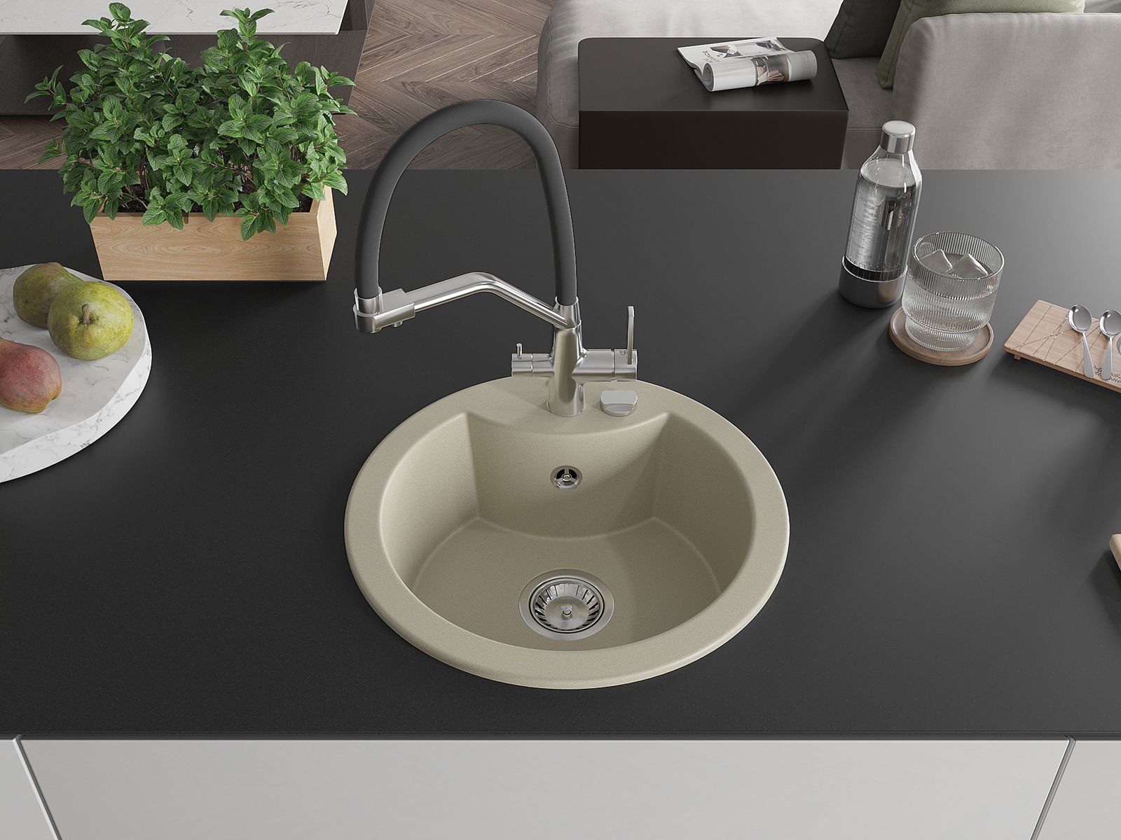 The sink is made from high-quality granite. It serves as an elegant and, above all, practical addition to any kitchen, regardless of its style. The high quality and durability of granite ensure many years of use.