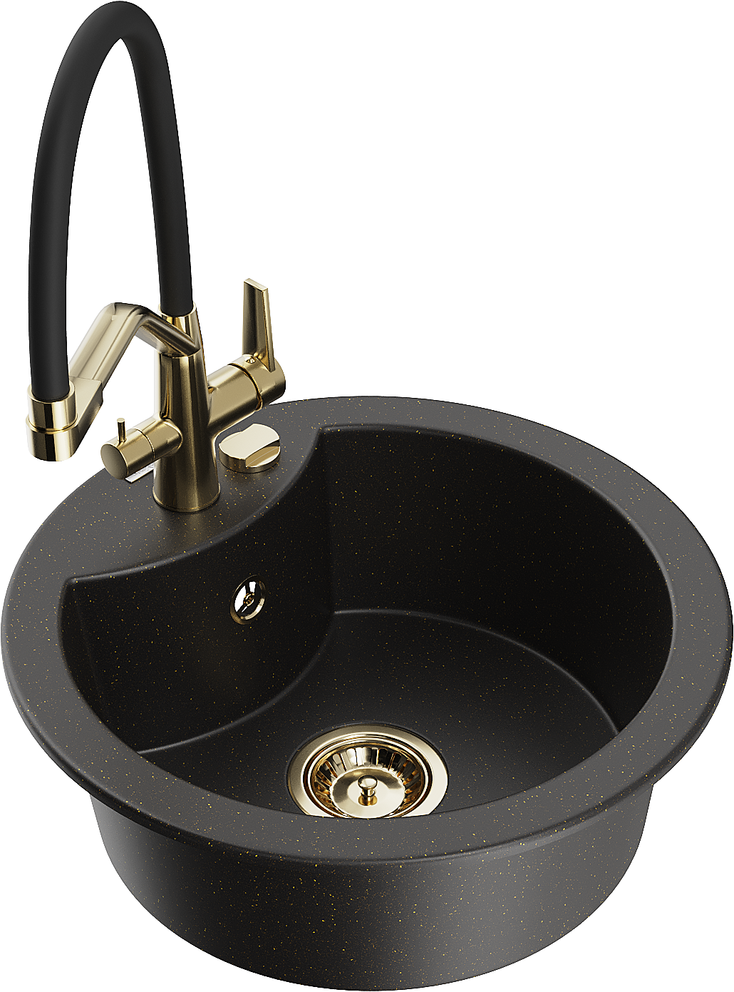 Mexen Diego Granite Sink 1-Bowl with Duo Kitchen Tap, Black/Gold Metallic - 6512-75-671701-57-G