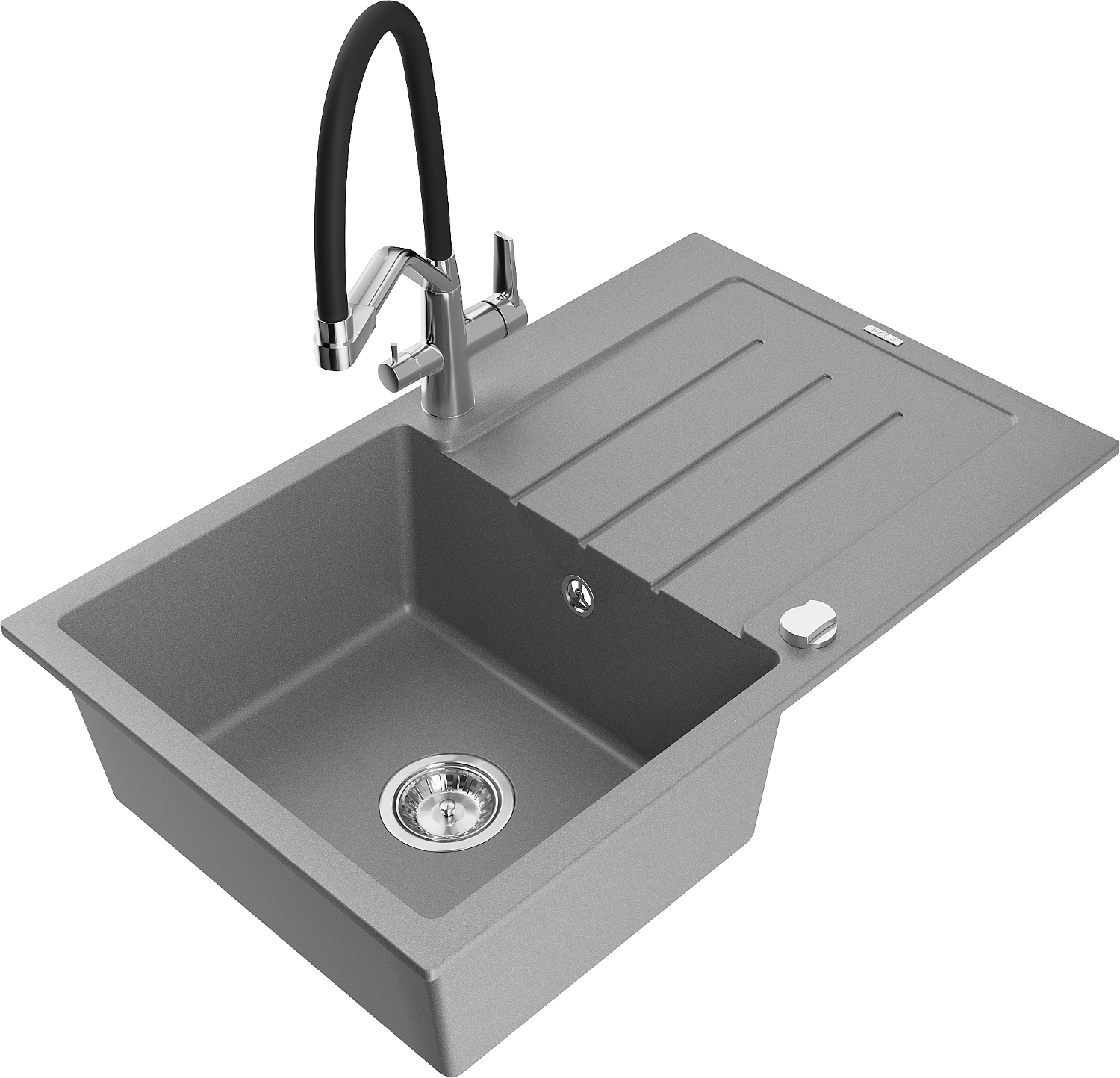Mexen Bruno granite sink 1-bowl with drainer and Duo kitchen tap, grey - 6513-71-671701-07