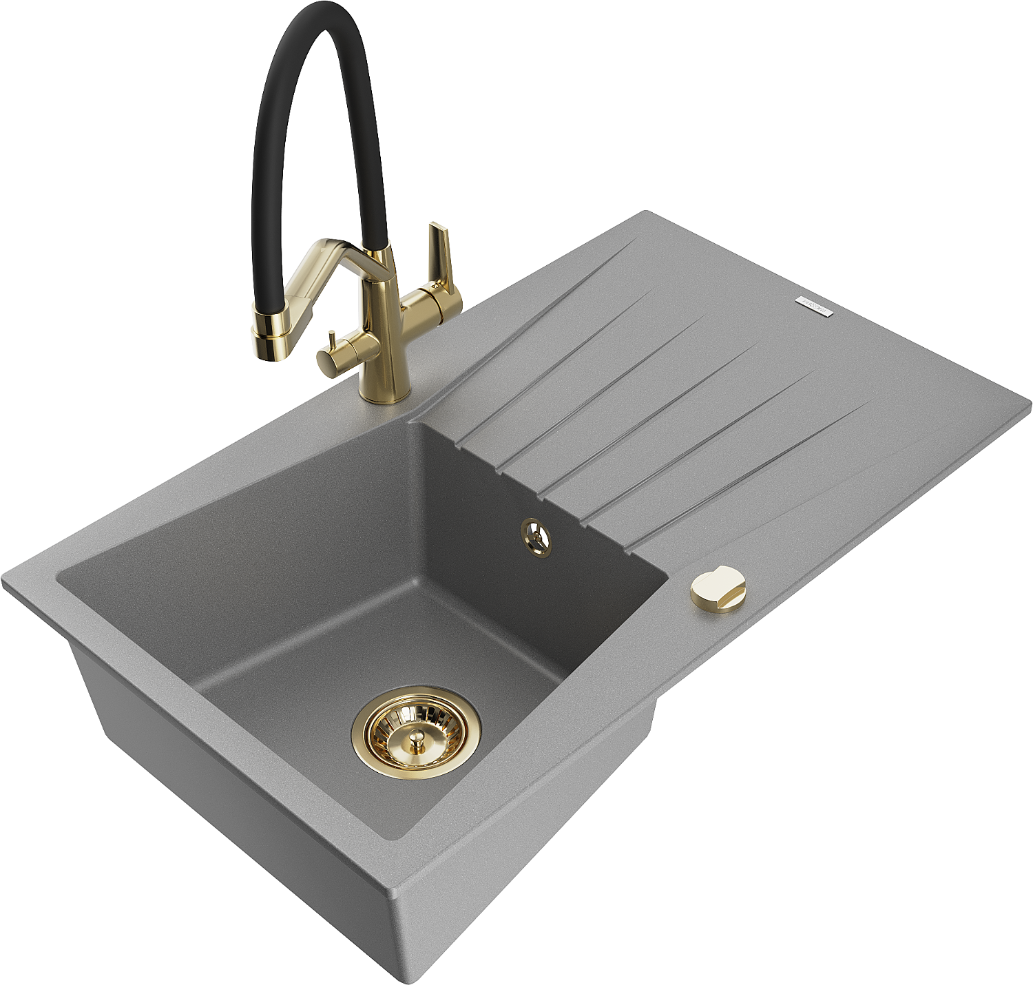 Mexen Cesar granite sink with 1 bowl, drainer and Duo kitchen tap, grey - 6514-71-671701-57-G