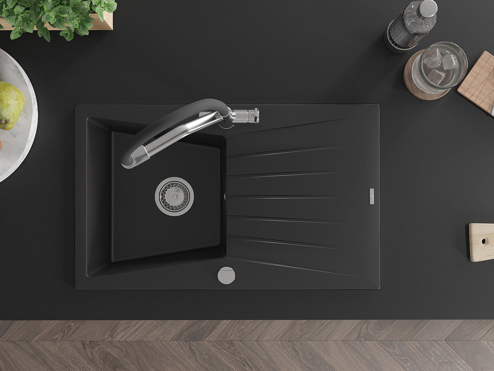 Choosing a sink with a draining board is a practical solution that allows you to set aside washed dishes or vegetables and fruits. The draining board makes daily cooking easier and helps maintain order in the kitchen.