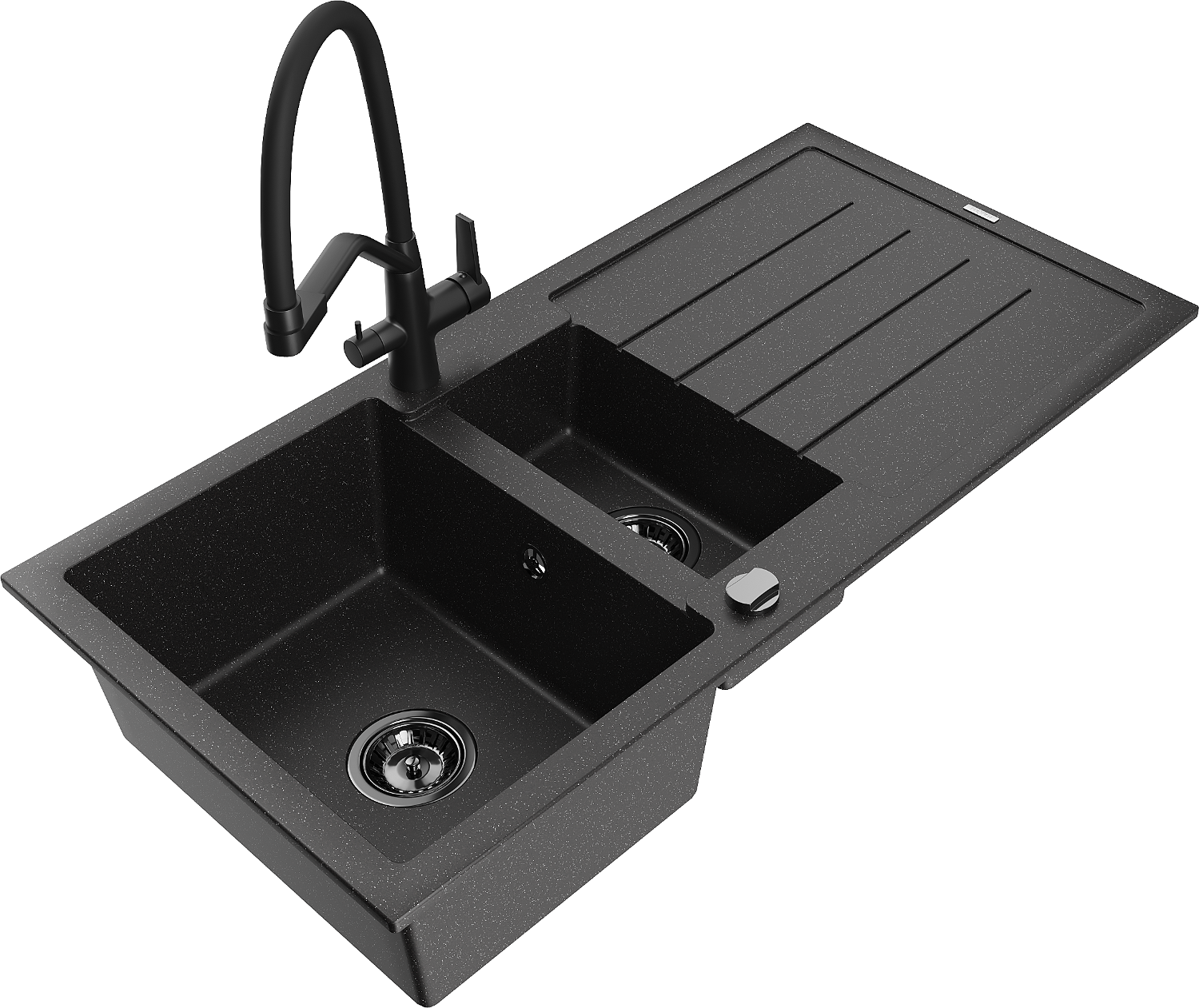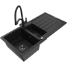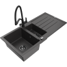 Mexen Andres granite sink 1.5-bowl with drainer and kitchen tap Duo, black/silver - 6515-73-671701-70-B